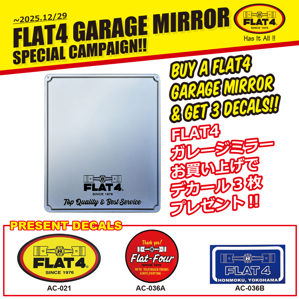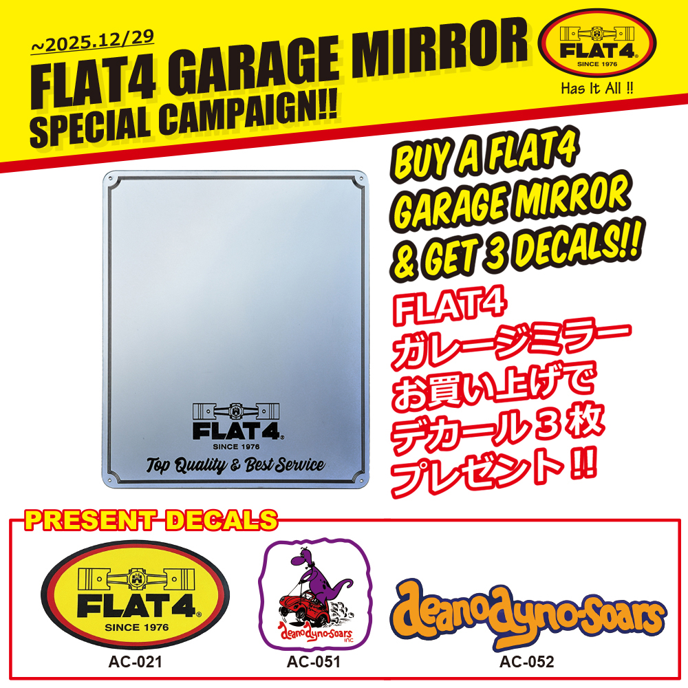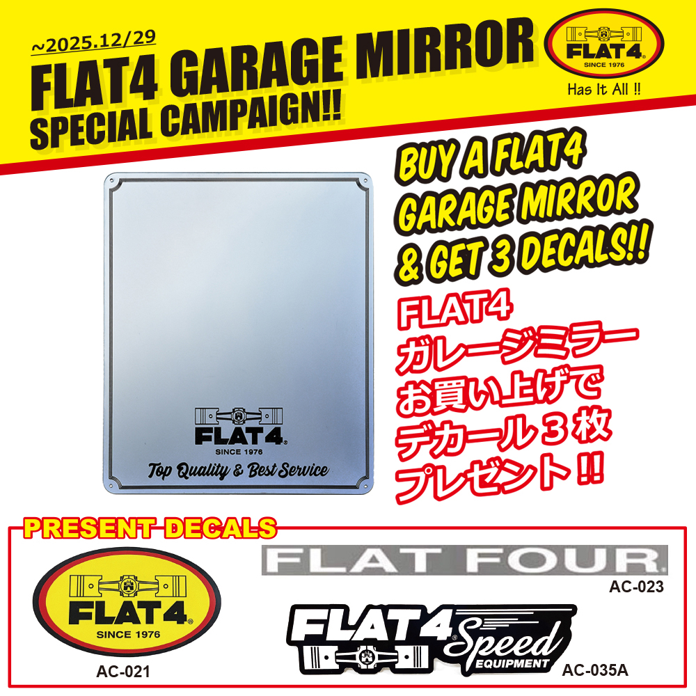 480mm x 400mmサイズの軽量なアクリルミラーにデザインフレームとFLAT4 ピストンロゴ、そしてFLAT4のモットーである"Top Quality & Best Servise"のレタリングをプリント。アメリカンな雰囲気抜群でガレージや洗面所/バスルームの雰囲気を高めます。