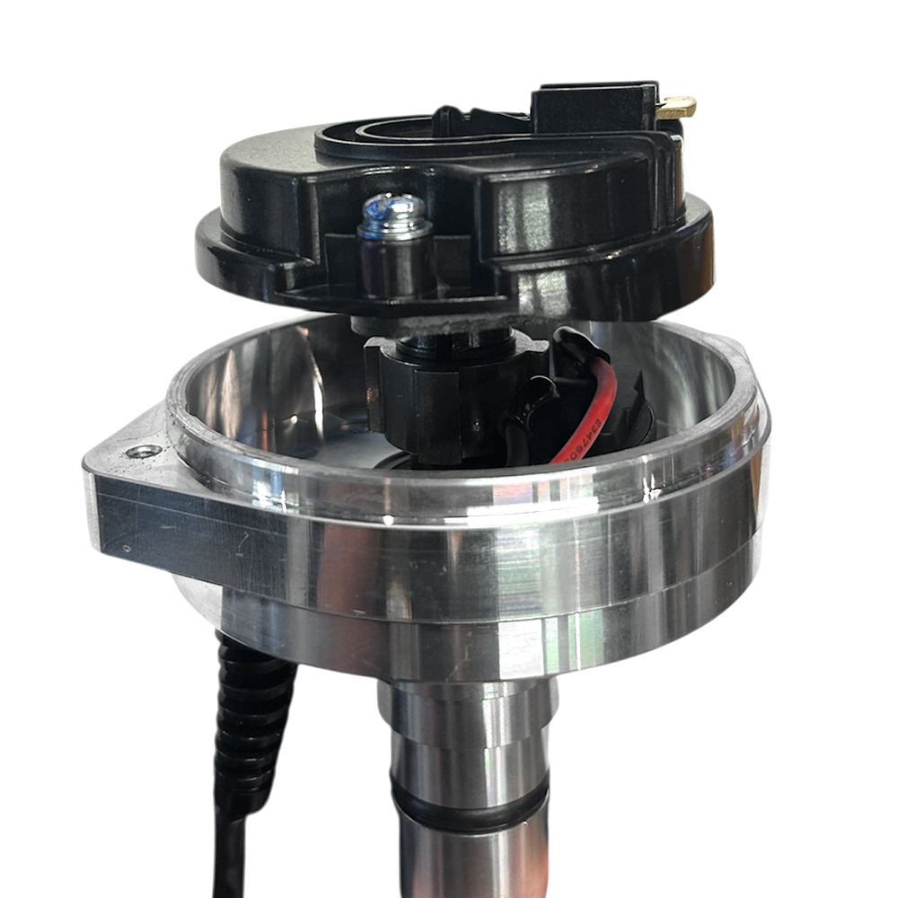 高性能なマグネティックモジュールが組み込まれたアルミビレットディストリビューターは、付属されているテンションの異なるスプリングを変える事により進角速度の変更が可能で、ブッシュのサイズを変える事により最大進角度を15°、20°、25°、30°に設定する事が出来ます。