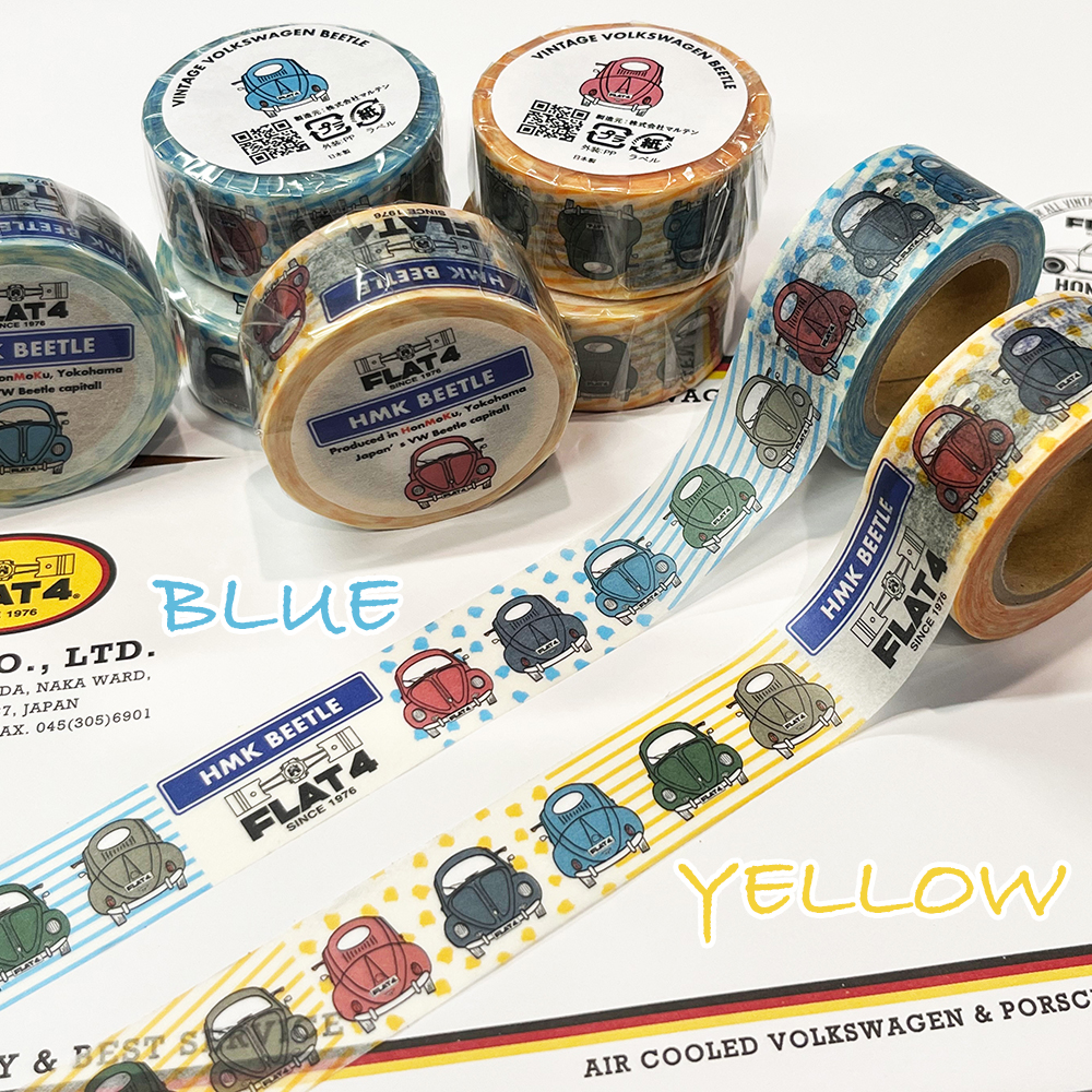 FLAT4の新たな本拠地「HMK:横浜・本牧(HonMoKu)」をキーワードにポップなTYPE-1 OVAL Window Modelのイラストが描かれたFLAT4の新たなコンセプト “HMK BEETLE(本牧ビートル)"シリーズの「FLAT4オリジナル マスキングテープ」が新登場!