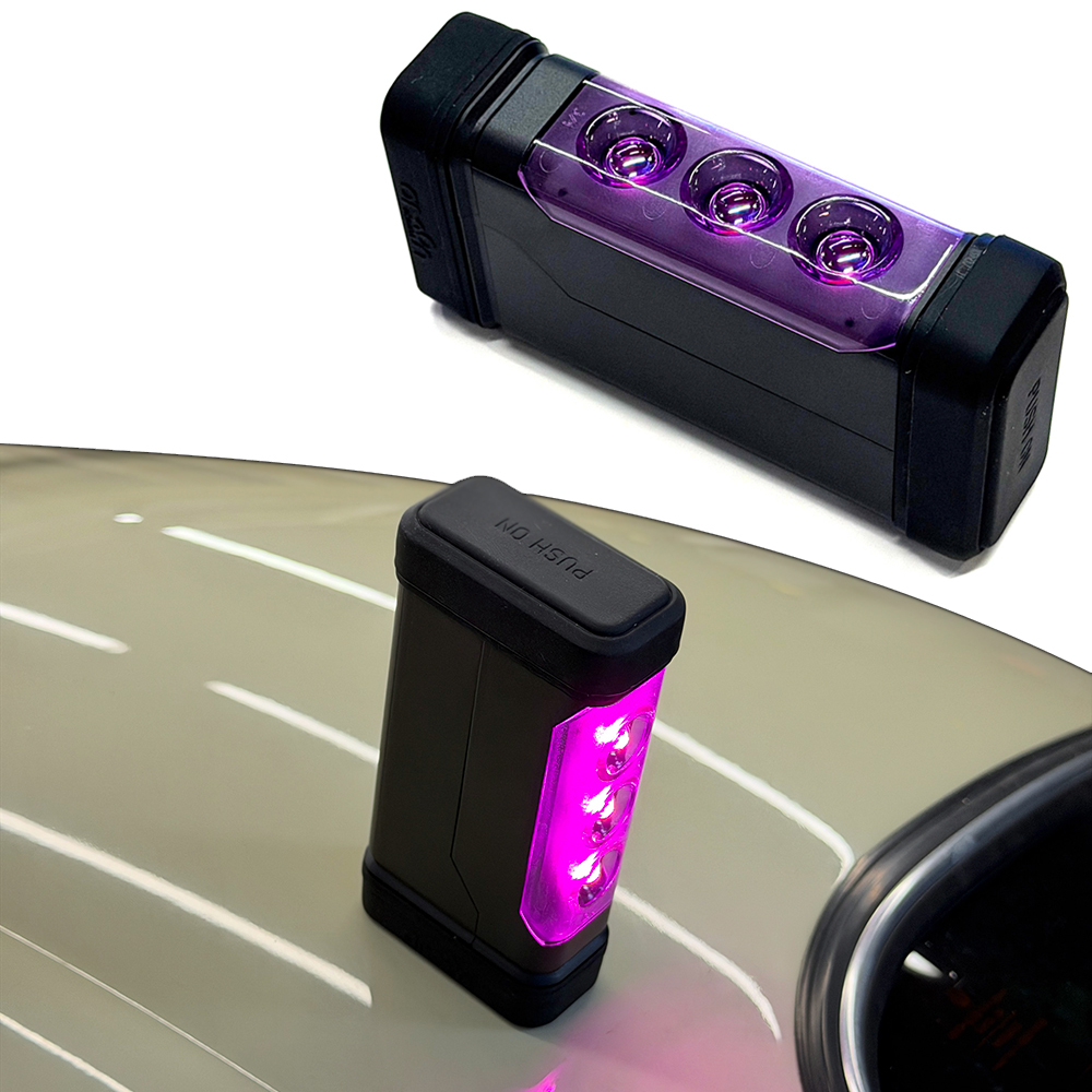 道路交通法において緊急停止時は三角表示板または停止表示灯の設置が義務付けられていますが、その際車外に出て三角表示板を車両より50m以上後方に置かなければならず高速道路上では危険です。パープルセーバーは車外に出る事なく車内からルーフにマグネットにて設置でき、500m後方からの視認性を確保し停止表示灯の基準を満たしています。使用の際は単四アルカリ電池4本(別売り)が必要となります。