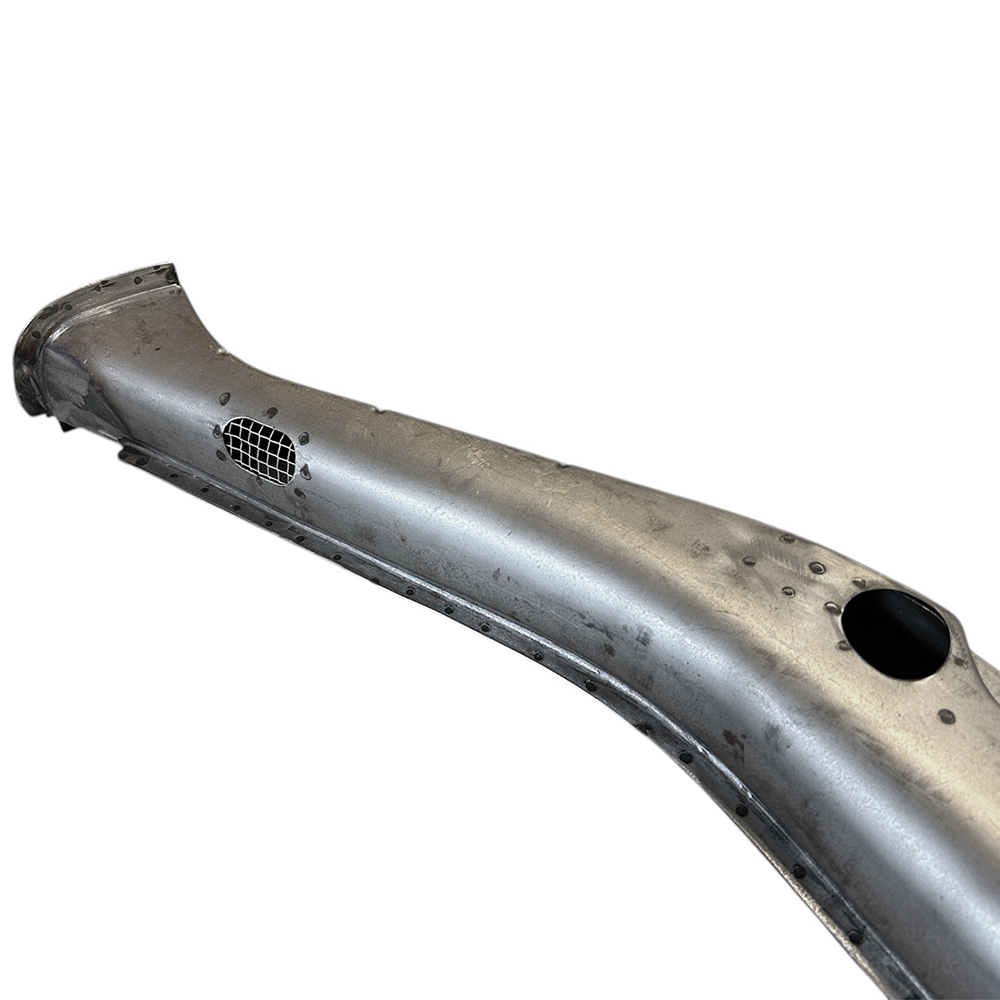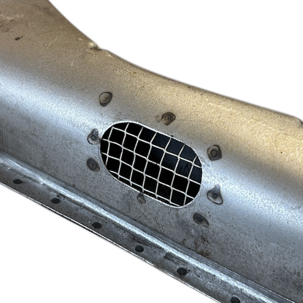 '54-'55年7月用はヒーターアウトレットがオーバル形状のメッシュタイプとなります。リアシート下のヒーターインレットパイプが付属しますので溶接により装着してください。スティール製のデフロスターパイプ(φ33mmx900mm)も付属します。