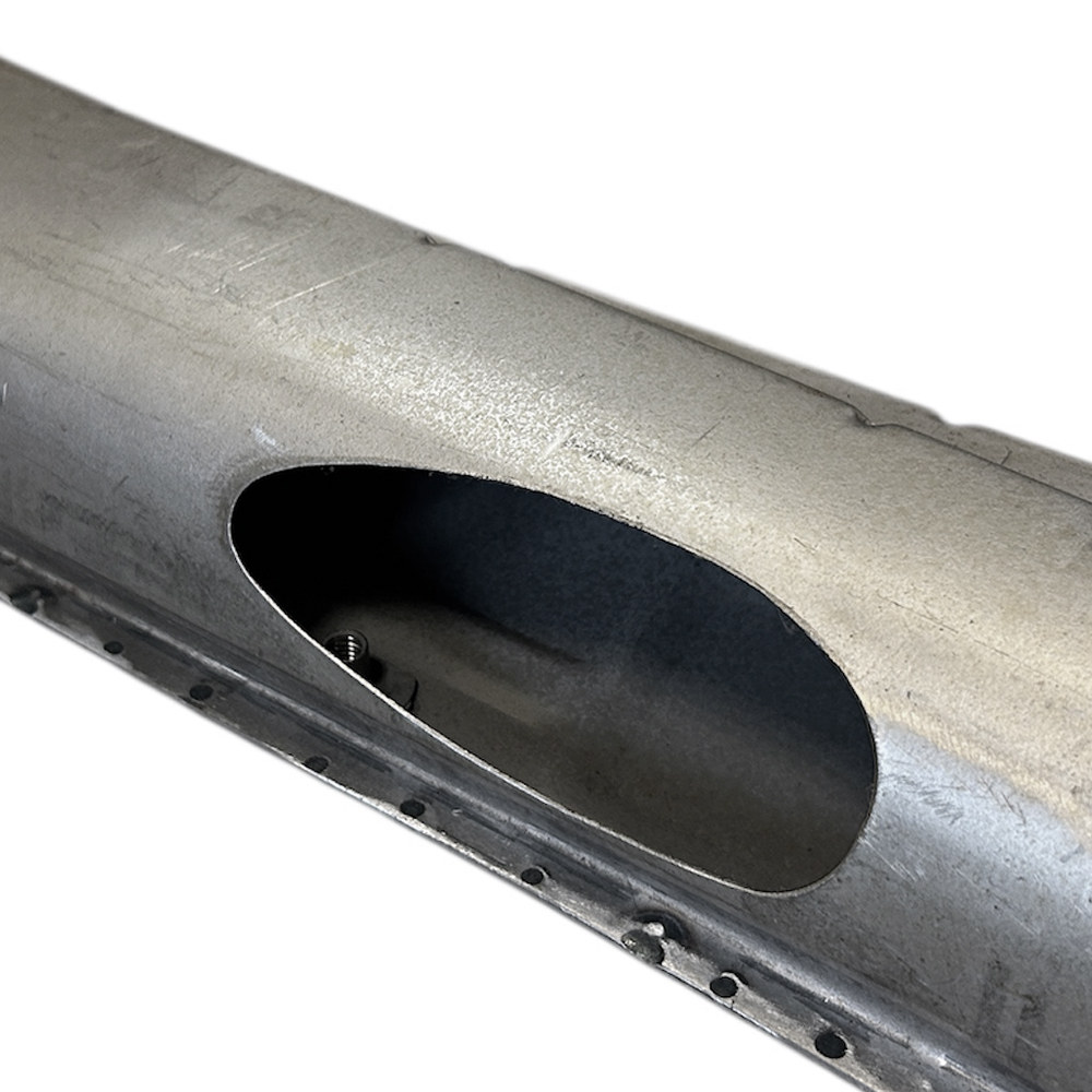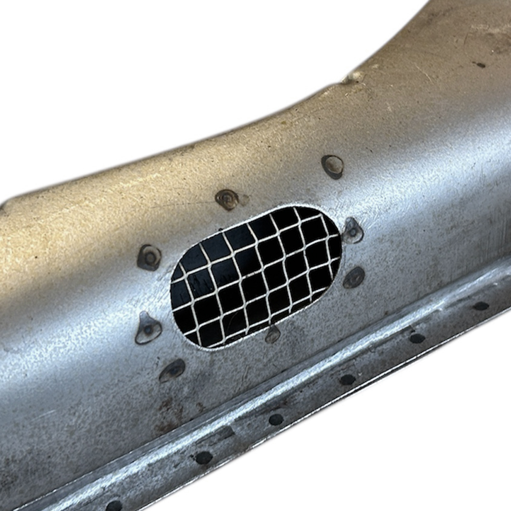 '54-'55年7月用はヒーターアウトレットがオーバル形状のメッシュタイプとなります。リアシート下のヒーターインレットパイプが付属しますので溶接により装着してください。スティール製のデフロスターパイプ(φ33mmx900mm)も付属します。