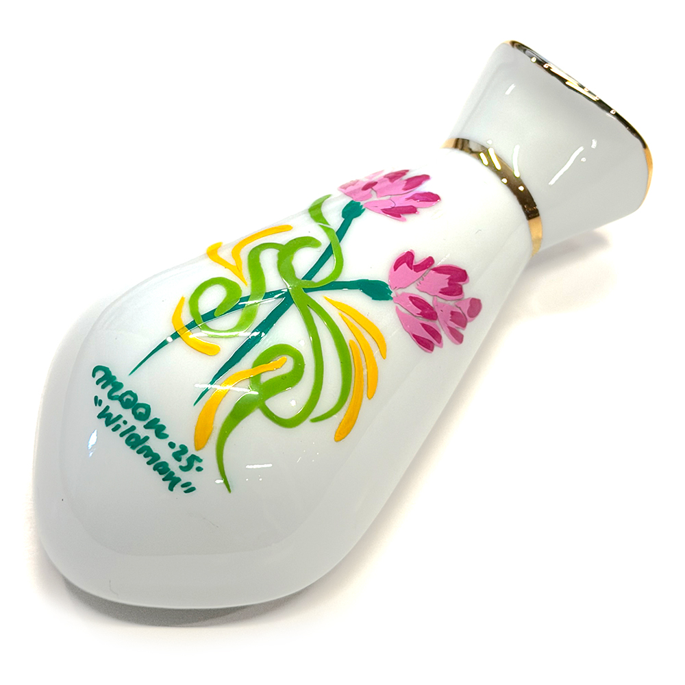 400年以上の歴史を持つ波佐見陶磁器にて製作したMade In JapanのFLAT4オリジナルフラワーベースに、MQQNEYESのピンストライパー ワイルドマン石井氏(“Wildman” Ishii)が一点一点ハンドペイントを施した、スペシャルコラボレーションモデルとなります。