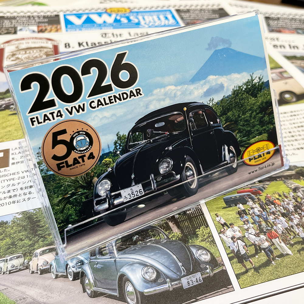 表紙には、2026年で50周年を迎えるFLAT4の創業者"Mr.KOMORI"の愛車1959 TYPE-1シングルナンバーが登場!