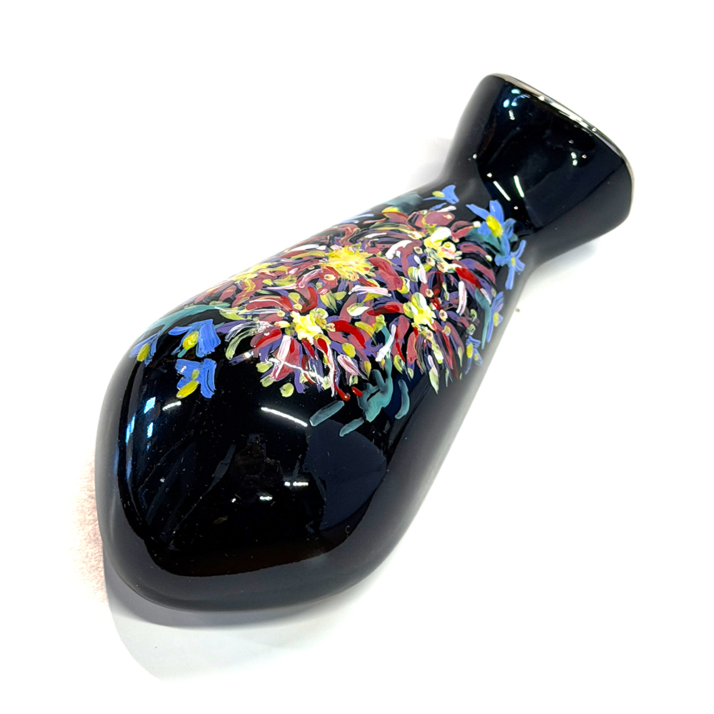 FLAT4 Flower Vase Black (Silver Rim) Ceramic w/Bracket (H:115mm) Painted by Yoko Ogata