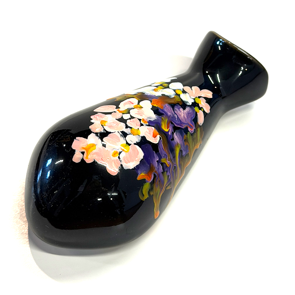 FLAT4 Flower Vase Black (Plain) Ceramic w/Bracket (H:115mm) Painted by Yoko Ogata