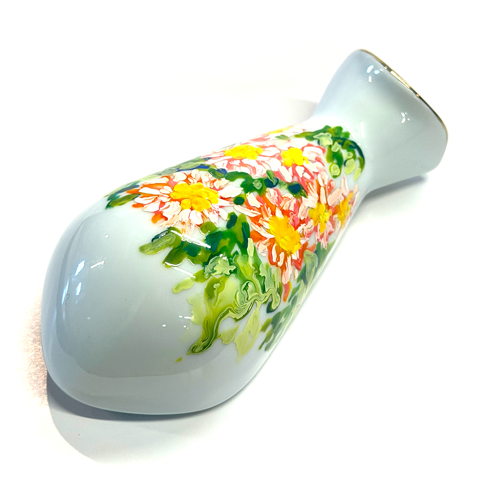 400年以上の歴史を持つ波佐見陶磁器にて製作したMade In JapanのFLAT4オリジナルフラワーベースに、東京を拠点に活動するアーティスト緒方陽子氏が一点一点ハンドペイントを施した、スペシャルコラボレーションモデルとなります。