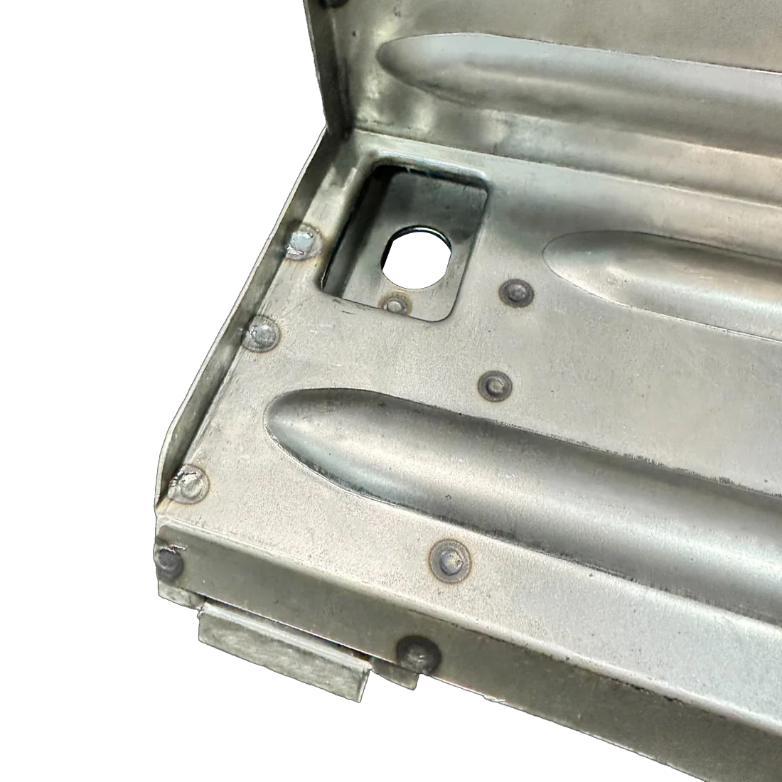 VW純正同様の1mm厚のスティールパネル製で、N.O.S.パネルを基に全体的な形状はもちろんプレスライン、フロントアクスルビームマウンティングエリア、ブレーキリーザーバータンクホール等のディテールにおいてもパーフェクトに再現し作られています。