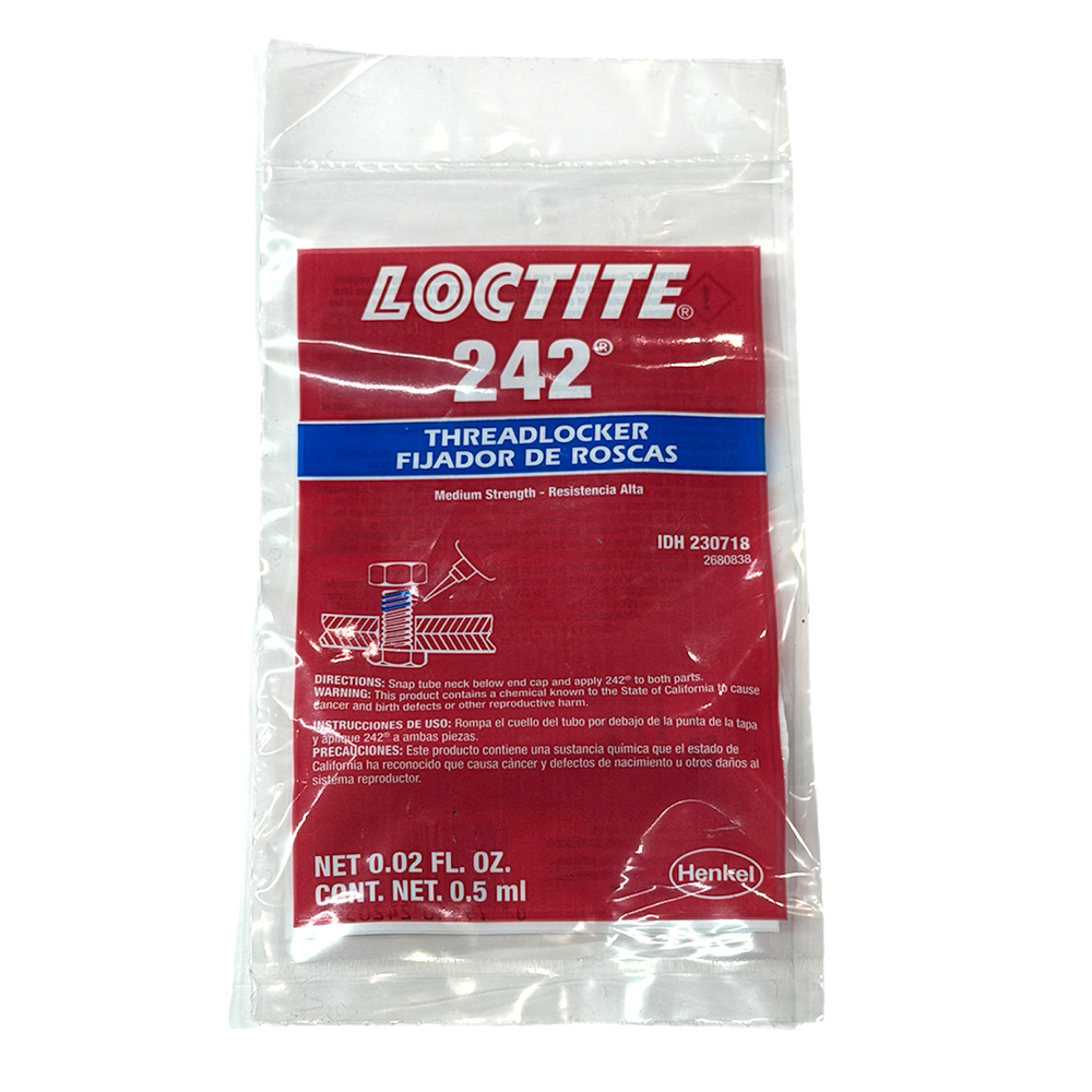 LOCTITE 242 スレッドロッカー(ブルー)は、中強度の緩み防止剤で、-55~+150℃と耐候性と耐油性に優れています。サスペンション周りやブレーキ周り(高温部を除く)、ボディ周りなど再度脱着が考えられるM6~M20のボルトに最適です。