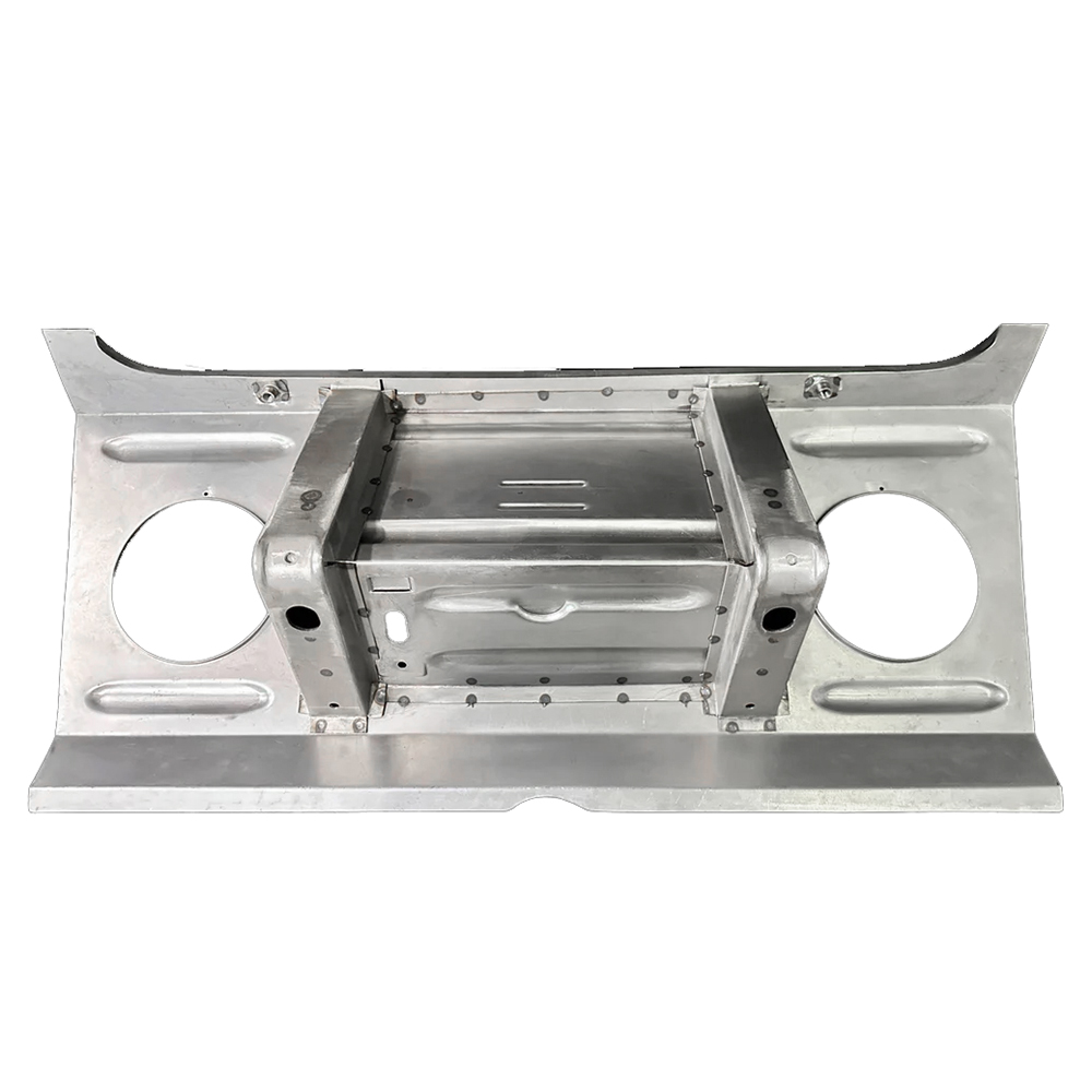 VW純正同様の1mm厚のスティールパネル製で、N.O.S.パネルを基に全体的な形状はもちろんプレスライン等のディテールにおいてもパーフェクトに再現し作られています。コンプリートパネルは、アウタースキンパネルとスペアタイヤトレー(リーンフォースメントブラケット付き)のASSYとなります。