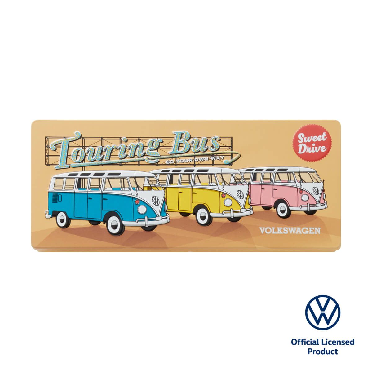 レトロなブリキ製のパッケージ缶にTYPE-2のイラストが描かれたケースの「ツーリングバス」チョコレートです。