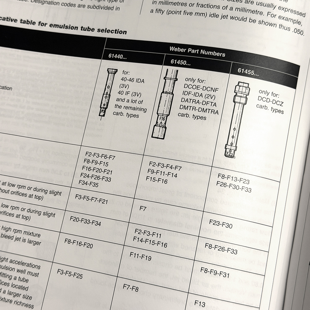 もちろん空冷VWエンジンにおいてポピュラーなIDAやIDF、DCNFなどのダウンドラフトタイプキャブレターにおいても、ジェット類やエマルジョンチューブの仕様や特性などがイラストつきで解説され、WEBERキャブレターをお使いの空冷VWオーナーにとって是非おすすめの1冊となります。