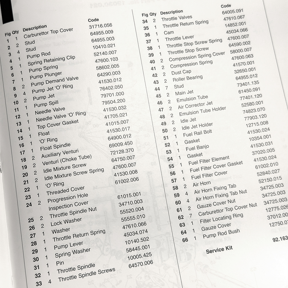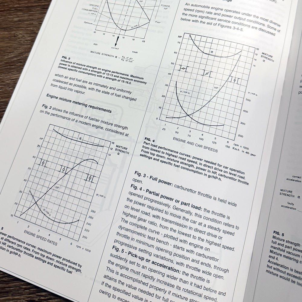 キャブレターの基本的な構造や構成パーツの説明から、WEBERキャブレターのセッティング方法、オリジナルでWEBERキャブレターが採用されているエンジンの解説、WEBERキャブレターの展開図&パーツリストなどが詳しく記されています。