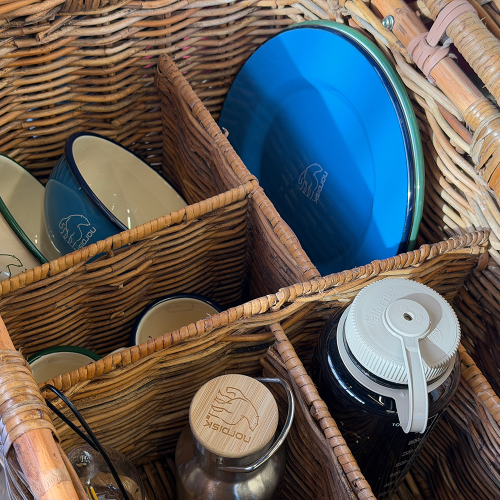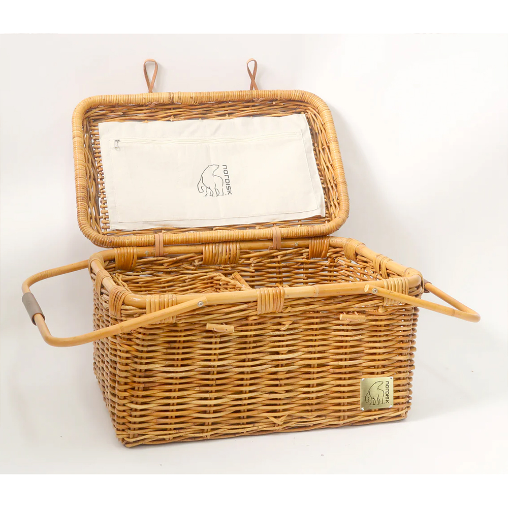 軽く丈夫で通気性にも優れたラタン(籐)製のNORDISKバスケットです。