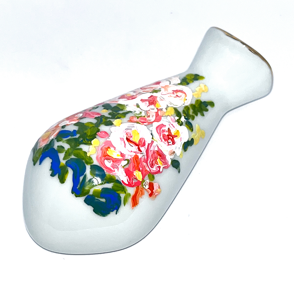400年以上の歴史を持つ波佐見陶磁器にて製作したMade In JapanのFLAT4オリジナルフラワーベースに、東京を拠点に活動するアーティスト緒方陽子氏が一点一点ハンドペイントを施した、スペシャルコラボレーションモデルとなります。