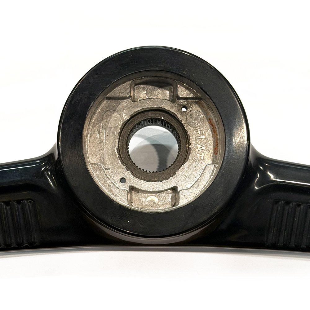 オリジナルではVDM 社製とPETRI社製がありますが、FLAT4バージョンでは造形の美しいPETRI社製デザインを採用。さらにオリジナルでは24スプラインと48スプラインが存在していましたが、タイロッドの調整後にステアリング位置の細かな微調整が行える後期の48スプラインとしました。