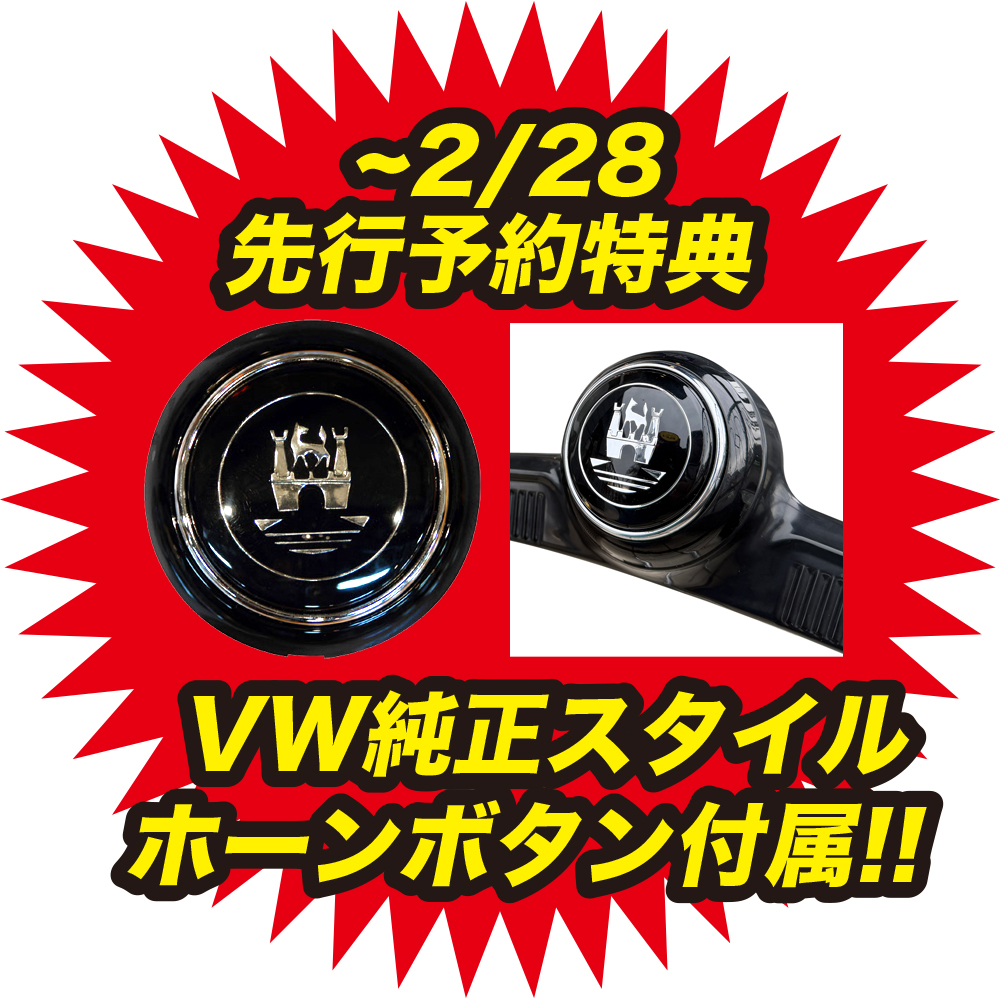 先行予約特典として2/28までのご注文でVW純正スタイルホーンボタン付属!!