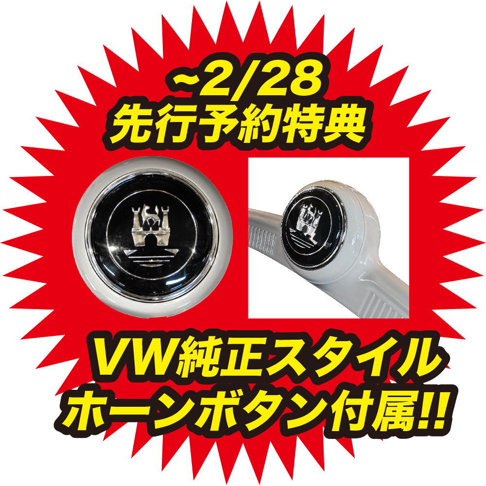 先行予約特典として2/28までのご注文でVW純正スタイルホーンボタン付属!!