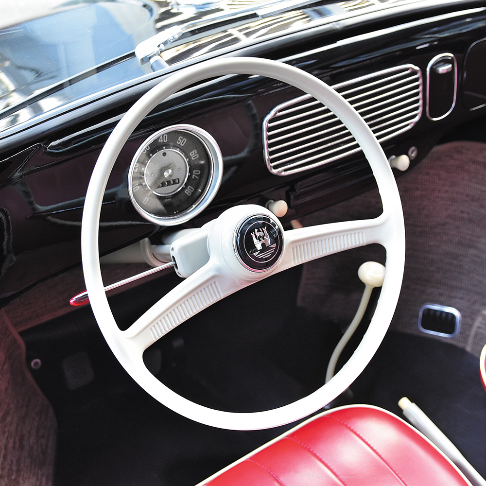 カラーはアイボリー、ホワイトグレー、ブラックの3色展開で、こちらはアイボリーとなります。TYPE-1とステアリングホイールが共通となるK.GHIA 1956-57年式にもおすすめです。