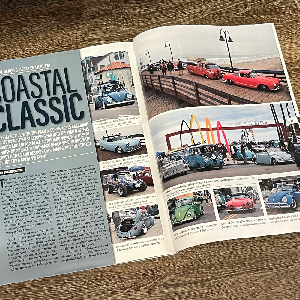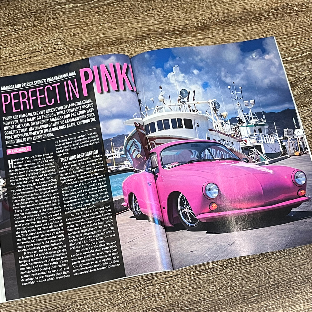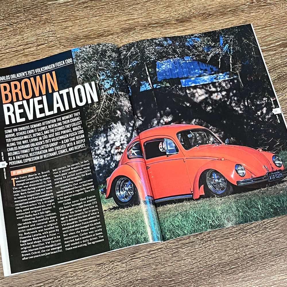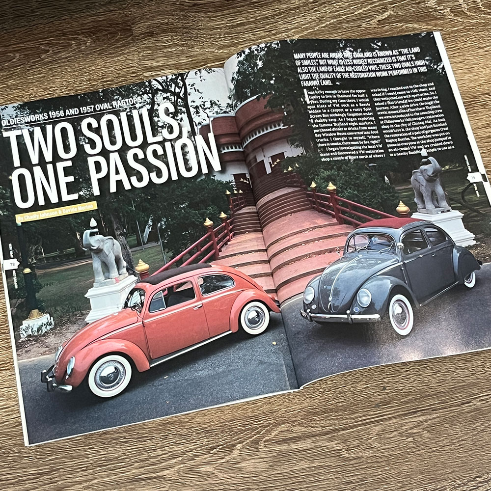 誌面では他にも、36hpスタンドエンジンをベースに、48IDAデュアルキャブレターを搭載した驚きのカスタムを実現した55 TYPE-1 Rag-Topや、1973年モデルながら、58-64年モデルのスモールウィンドーやアーリーモデルのテールライト等を備えたブラジリアン仕様のTYPE-1 "Fusca"、そして、トップクラスのVWインテリアを手掛けるW.C.C.(West Coast Classic)が手掛けたカットモデルのTYPE-1 OVALモデルでは、同社のハイクォリティーな内装が展示されたインテリアはもちろん、パーフェクトなレストアが施されたボディなど、見所満載の車両が多数掲載されています!