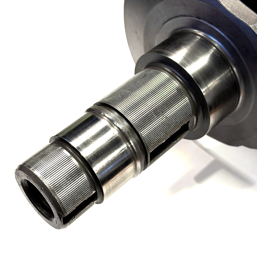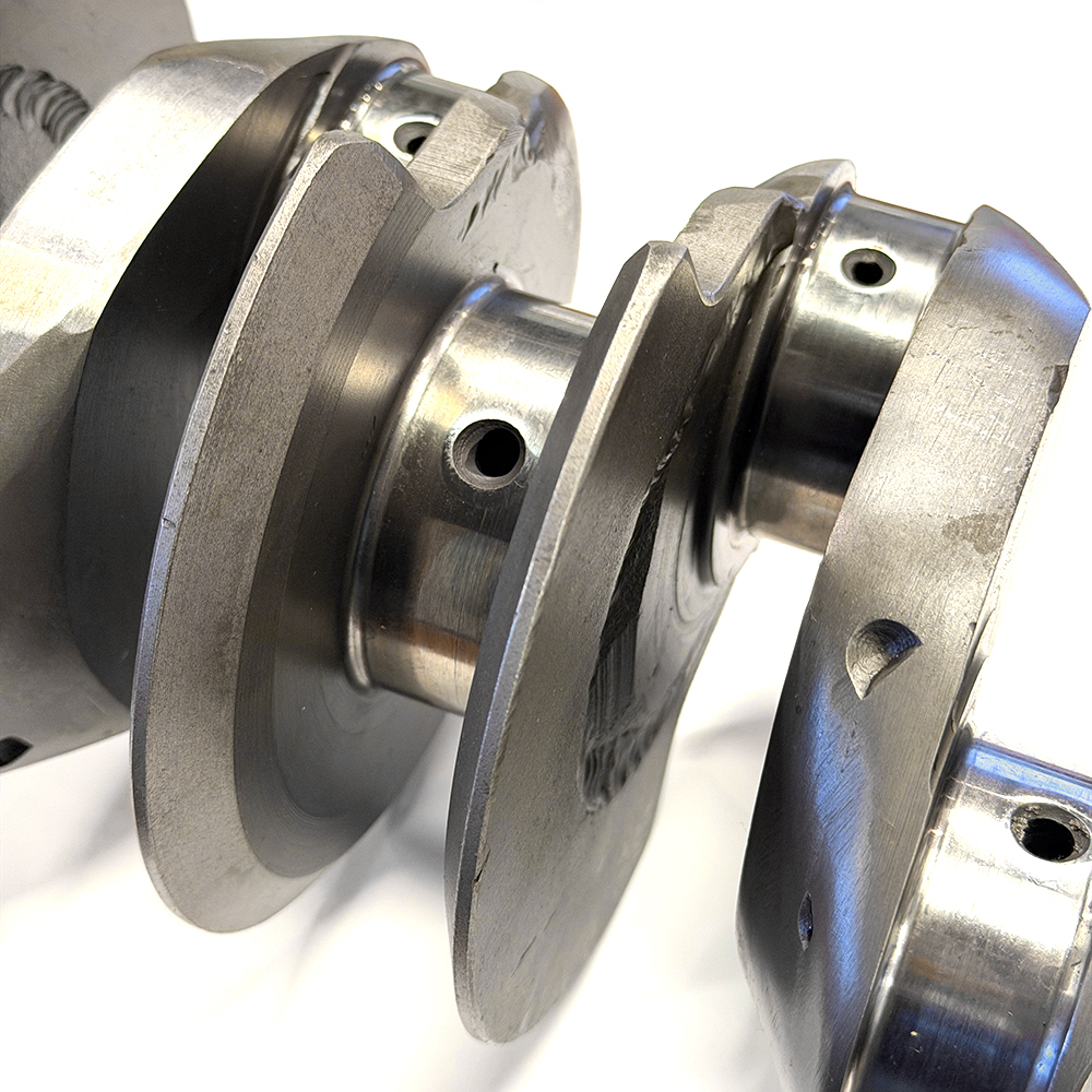 クランクシャフトは、高強度なVW純正69mmフォージドをベースに84mm迄ロングストローク加工、さらにカウンターウェイト化&ナイフエッジ処理が施されています。