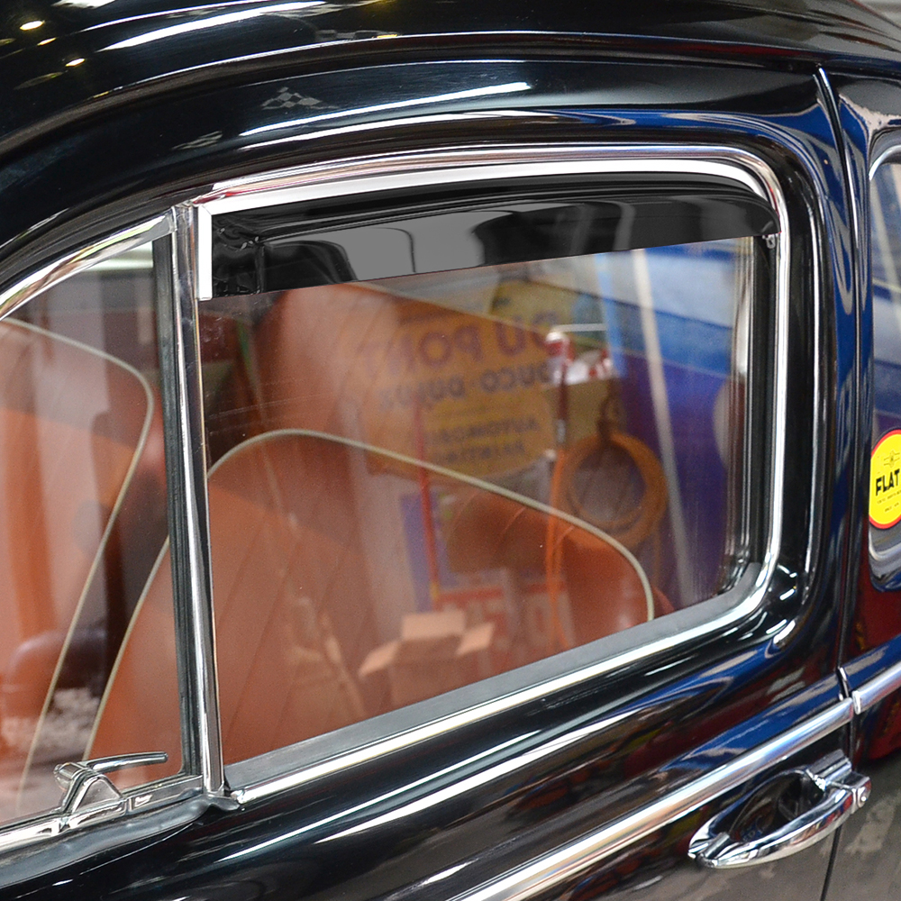 取り付けはドアのフェルトチャンネルに挟み込み、タッピングビス等にて固定するだけととても簡単です。'52年10月-'64年モデルまでのTYPE-1用で、左右ペアでの販売となります。